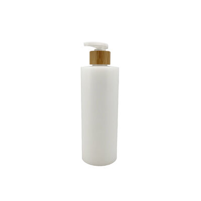 The natural bamboo cap adds an eco-friendly element to the packaging. As a renewable material, bamboo conveys environmental consciousness while providing warm, natural texture that creates appealing visual contrast with the plastic bottle body.