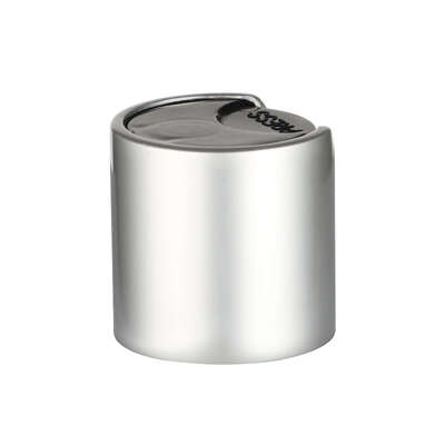 This disc top cap features a sophisticated combination of silver aluminum shell and PP plastic construction.