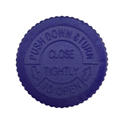 28/410 Purple Plastic Striped Child Resistant Cap with Anti-Slip Press and Turn mechanism designed for maximum safety and reliability.